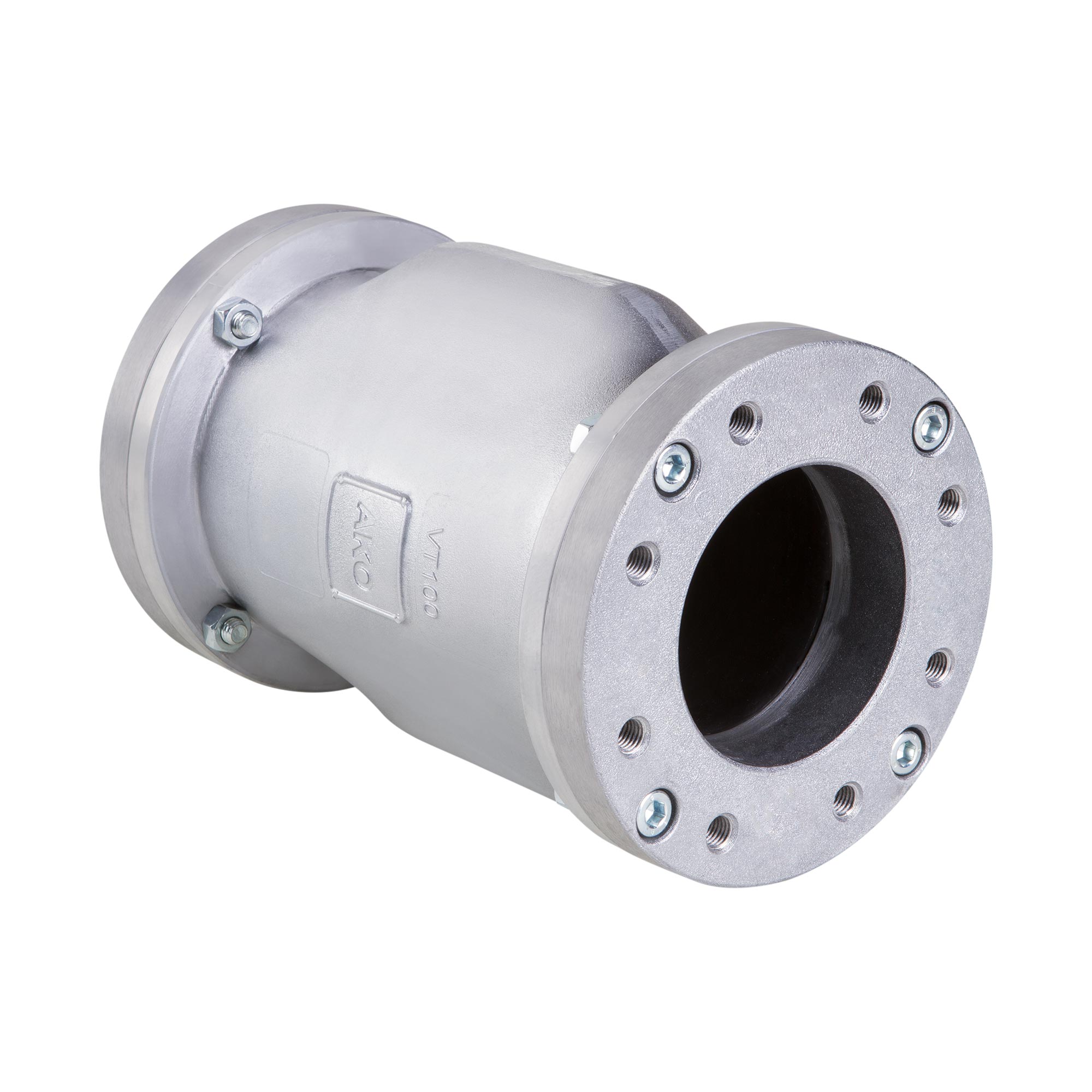 AKO Air operated Pinch Valve, tanker flange connection, DN100. Body made of: Aluminum, Connections made of: Aluminum. Sleeve made of: Medium contact EPDM.