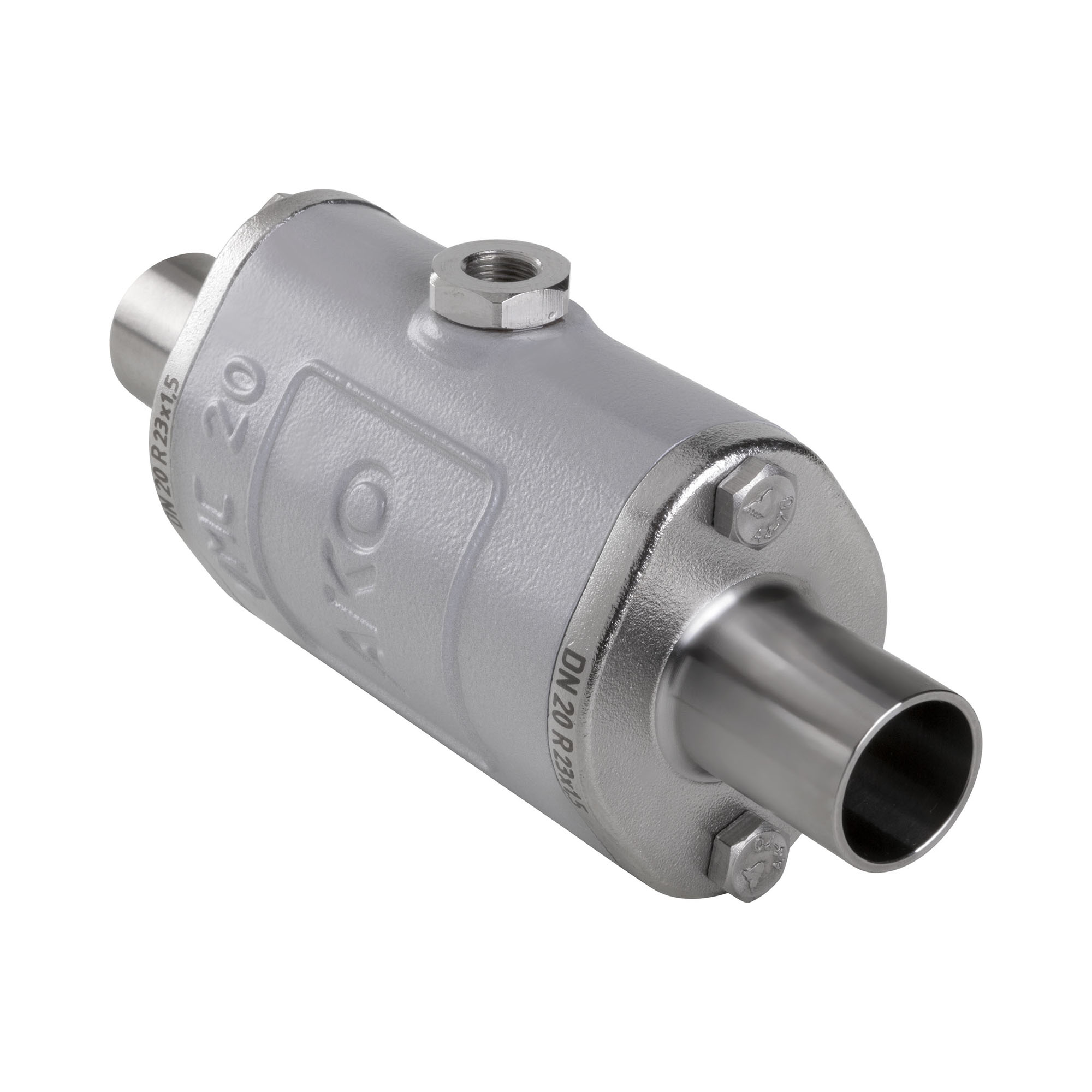 AKO Air operated Pinch Valve, weld-on ends, DN20. Body made of: Aluminum AlSi10Mg, Connections made of: Stainless Steel 1.4404. Sleeve made of: Viton.